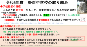その後、校長先生から学校の取り組みについて、プレゼンテーションを行いました。
